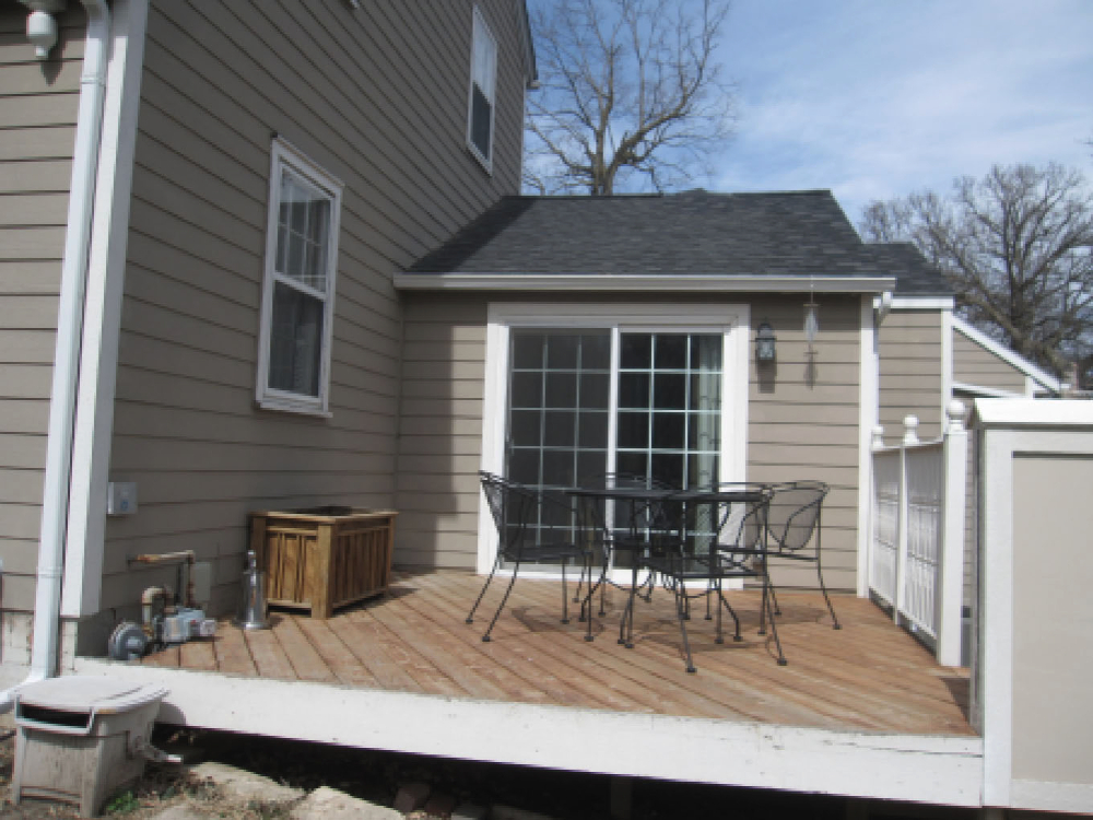 Entry stoop: siding to close, 2″ minimum clearance.