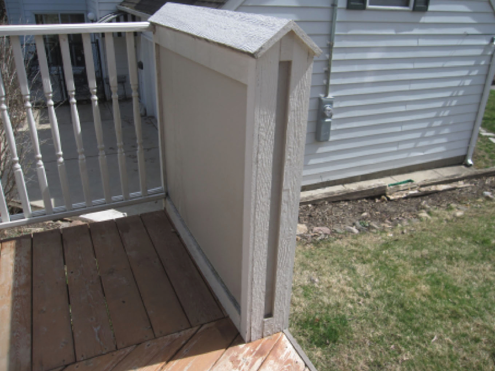 Deck handrail; flashing and clearance. Photo of the East Side.